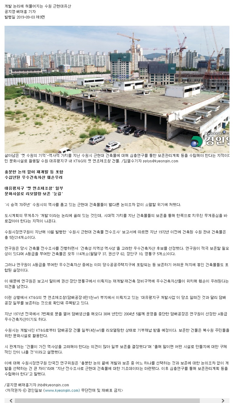 | 수원 화서역 인근 KT&G 개발 부지에 문화시설 들어선다 (0) | 2020.02.06 |