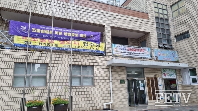 ▲ 벽적골8단지 두산.우성.한신아파트 단지 내 위치한 주택조합 설립추진위원회 건물.