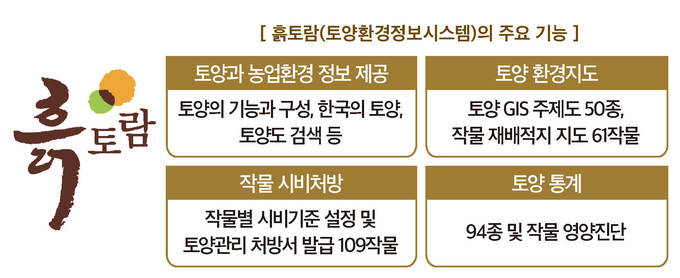 농업 분야에서 이렇게 대대적인 사업을 벌인 적이 없었기에 초반에는 다양한 시행착오를 거듭했으나 △토양도, △토양검정 자료, △작물영양 장애진단, △농업환경 변동조사 등 전국의 토양정보를 종합해 과학영농 관련 정보가 제공되는 ‘흙토람’ 시스템을 통해 친환경 농업의 기반이 한층 강화됐다.