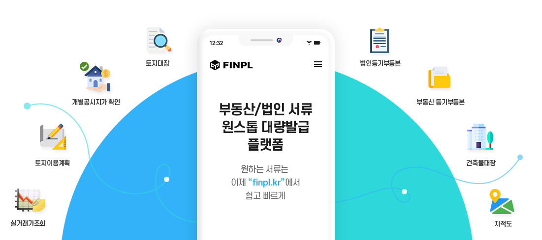 핀플러스글로벌은 부동산등기부등본, 건축물대장, 토지대장, 지적도, 토지이용계획 등 두 곳으로 이원화된 부동산·법인 발급 서류를 단 일회의 로그인과 주소입력으로 별도의 인력 투입 없이 한 곳에서 일괄 열람 및 발급이 가능한 플랫폼을 출시했다.