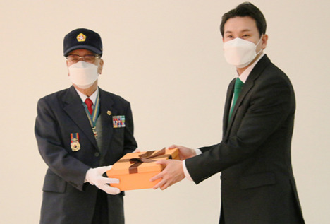 신천지예수교 증거장막성전 요한지파 수원교회(이하 신천지 수원교회)가 20일 6.25참전유공자회 수원지회에 기념 선물을 전달 받았다.