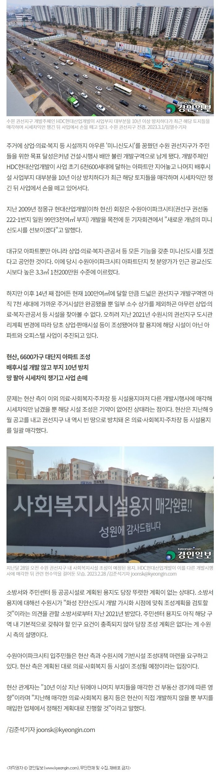미니신도시로 만든다더니… 건설사 배만 불린 수원 권선지구