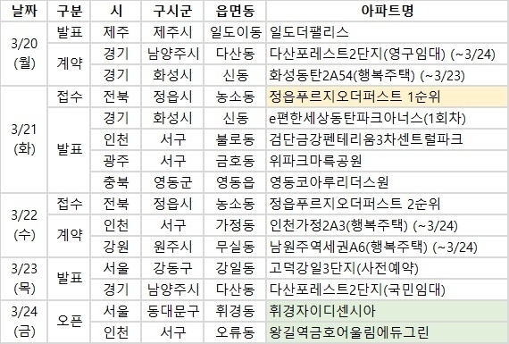[분양 톡톡] 3월 넷째 주(03월 20일~03월 26일) 분양일정