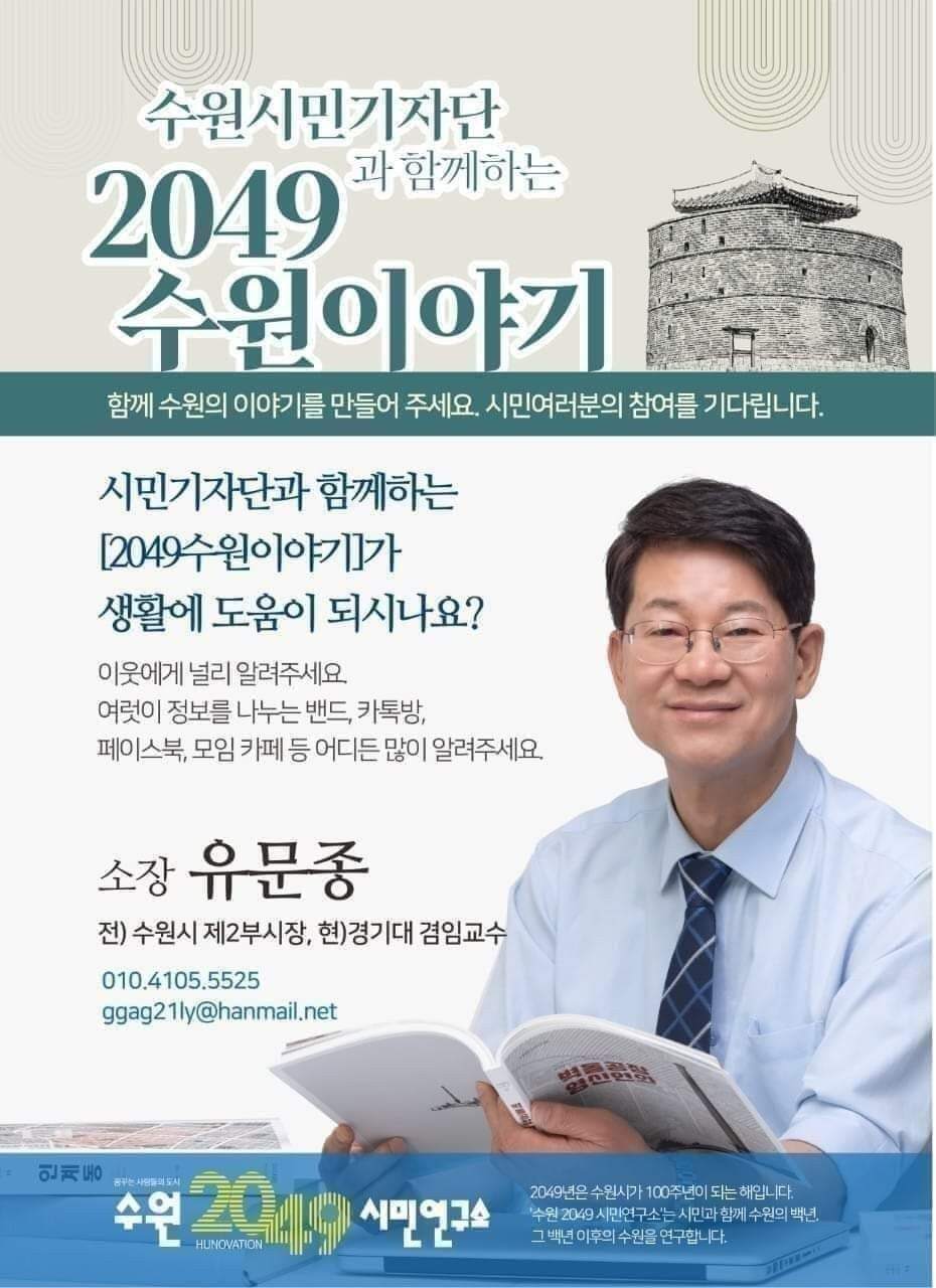 이웃과 나누고 싶은 #이야기나 #개선의견 등을 편하게 #010-9140-1063으로 문자 주세요. #이메일 #redhot-hj@hanmail.net 으로도 보내주세요. 2049년은 #수원시가 #100주년이 되는 해입니다. #수원2049시민연구소 #소장 #유문종