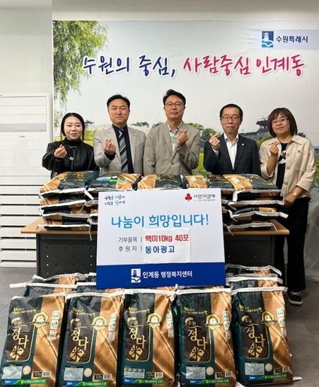 [정도일보 고정희 기자] 동아광고가 팔달구 인계동에 백미 10kg짜리 40포를 전달했다.