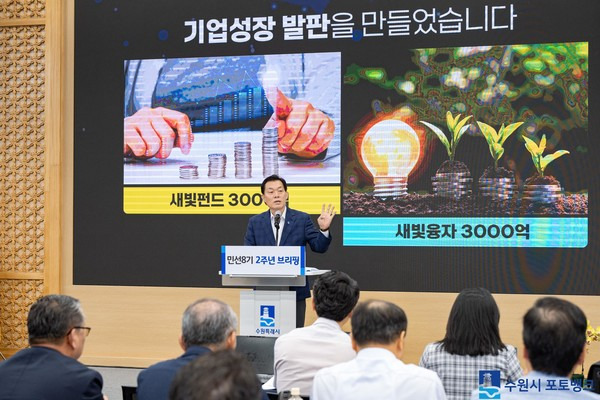 ◇ 민선 8기 2년… 새빛 시리즈 큰 호응 얻어 = 민선 8기 ‘수원을 새롭게, 시민을 빛나게’라는 슬로건을 내걸면서 이 시장은 초기 ‘경제특례시’·‘생활특례시’·‘돌봄특례시’라는 3가지 주제로 시정을 돌봤다. 무엇보다 경제에 방점을 두고 노력을 계속 이어왔다.